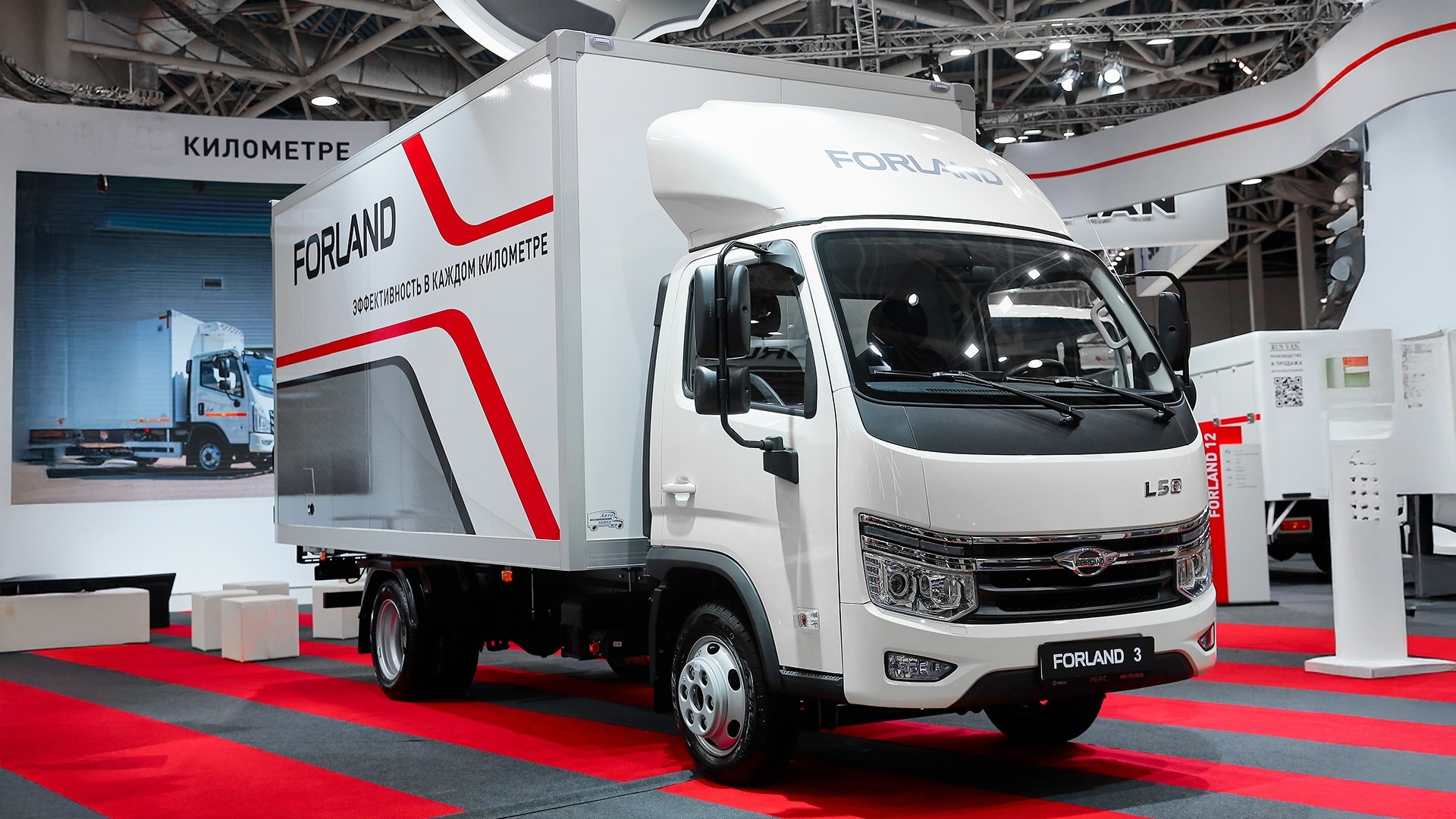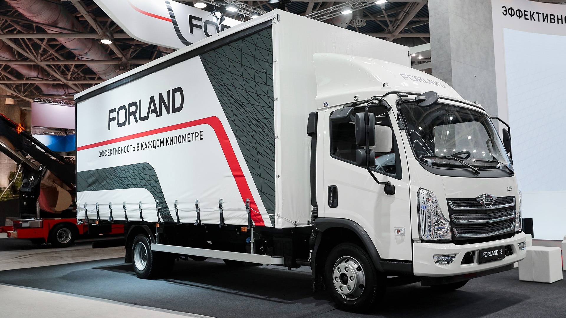 Гости мероприятия смогут оценить новую бортовую платформу со сдвижным тентом на шасси Forland 8 вместимостью 14 европалет. Грузовик полной массой 7 990 кг оснащен турбированным дизельным двигателем объемом 3,8 л, мощностью 152 л.с. и крутящим моментом 491 Н·м, а также 6-ступенчатой механической коробкой передач. Объем топливного бака – 200 л.